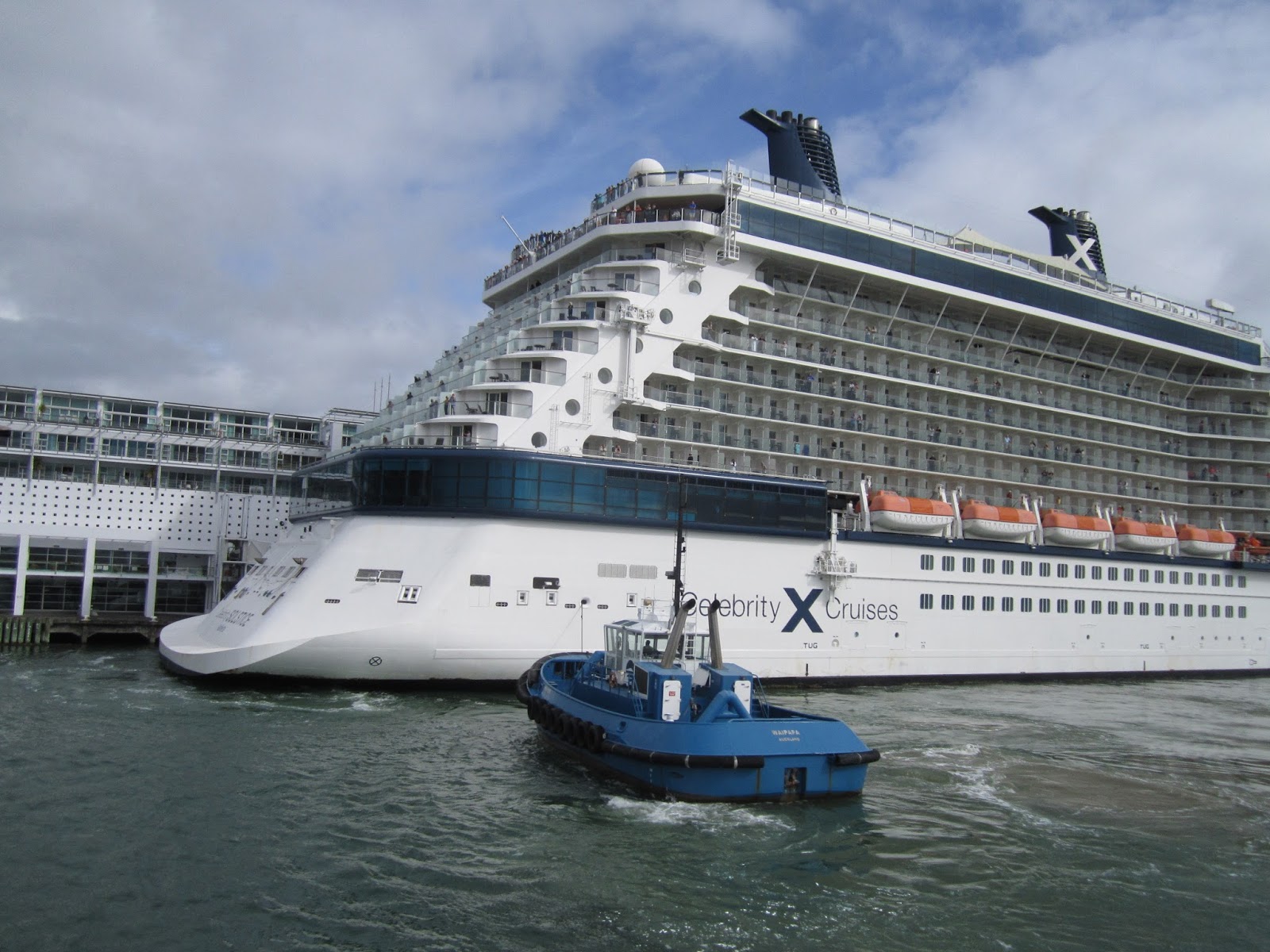 Celebrity Solstice is the lead ship of the Solstice-class of cruise ships operated by Celebrity Cruises. (We learn from Wikipedia).Built by Meyer Werft in Papenburg, Germany, she was floated out on August 10, 2008, and christened by ocean scientist Professor Sharon L. Smith at a ceremony in Fort Lauderdale, Florida, USA, on November 14, 2008. The first post-Panamax vessel in the Celebrity fleet, she features innovative interior design and onboard amenities, including an ocean-going live grass lawn, a glassblowing studio, and a 12 deck-high atrium. 121,878 tonnes, 314.86 metres long, 36.88 metres wide, 8.23 metres draft, 2,850 passengers, 1,500 crew, 24 knots. Here she is visiting Auckland (again, she's been a few times before).